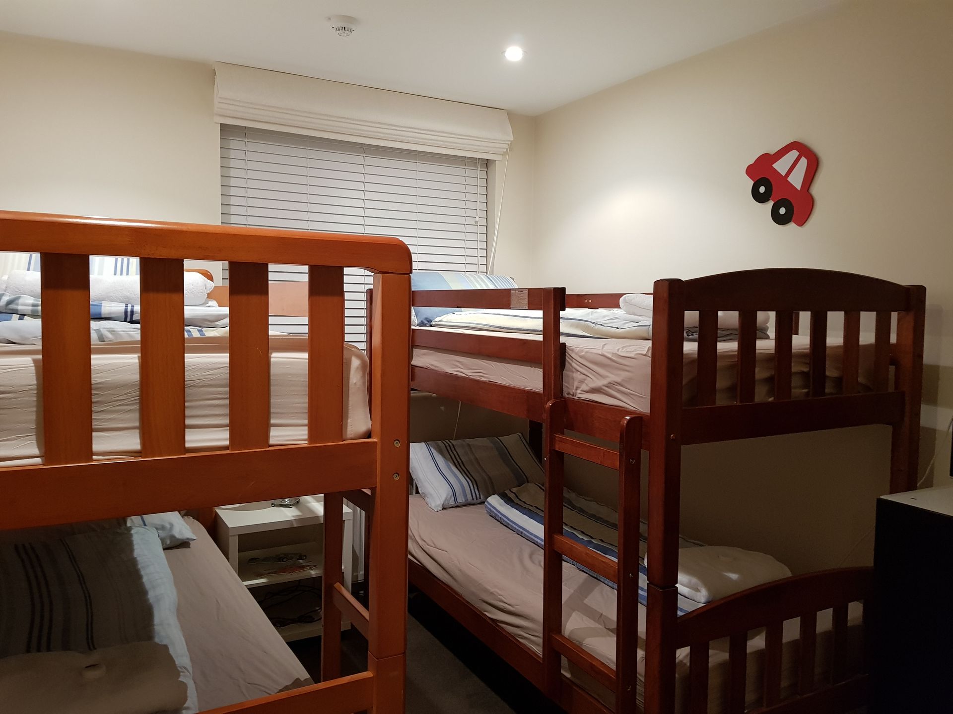 With room to sleep up to 6 people with a queen bed in one room and double bunks in the other this apartment is great accommodation for families.