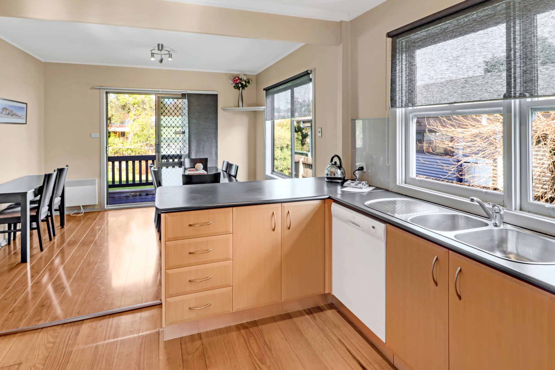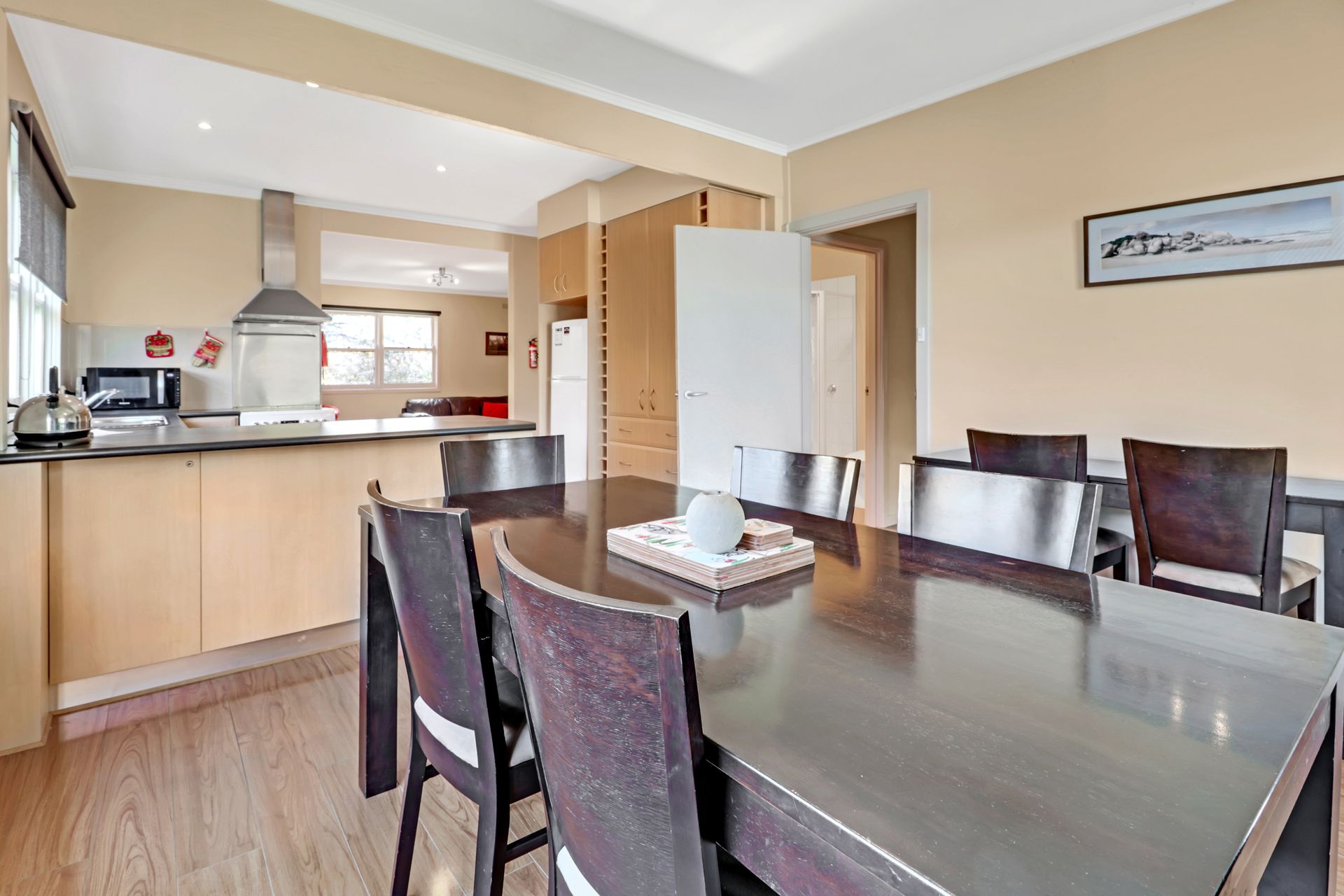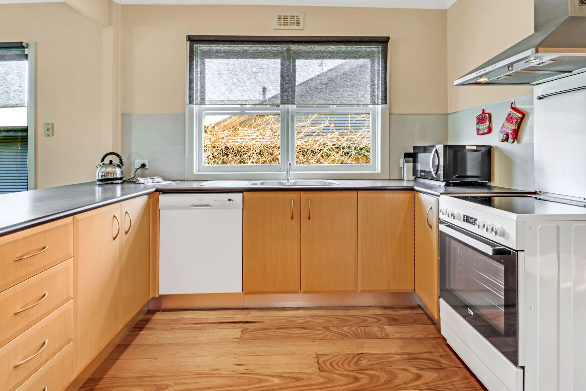 A spacious three (3) bedroom, 2 bathroom cottage features a generous living area with plenty of sofa seating, wood fire (free wood), reverse cycle aircon and heaters in all bedrooms, a full kitchen and dining room that leads out to the covered balcony with BBQ facilities overlooking simple garden and yard.